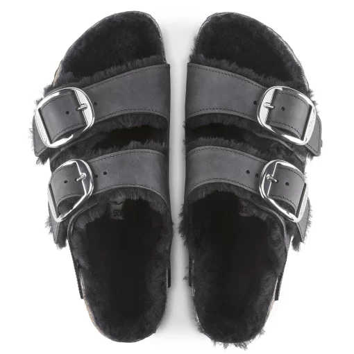 Birkenstock Women’s Sandals Arizona Big Buckle Shearling Oiled Leather Black | Black